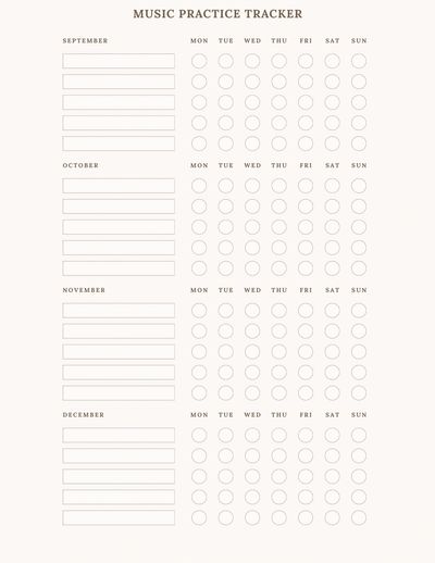 3 page PDF printable download to track your music practice progress. Check off, color in or use stickers to mark the days you practice! Fill in the blank dates for each month make this download re-usable for years to come. Happy practicing! Priced in CAD, converted in USD at checkout.